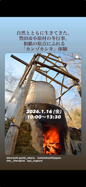 和紙づくりの伝統作業「カンゾカシキ」体験&おばらの自然の恵みをあじわうお弁当