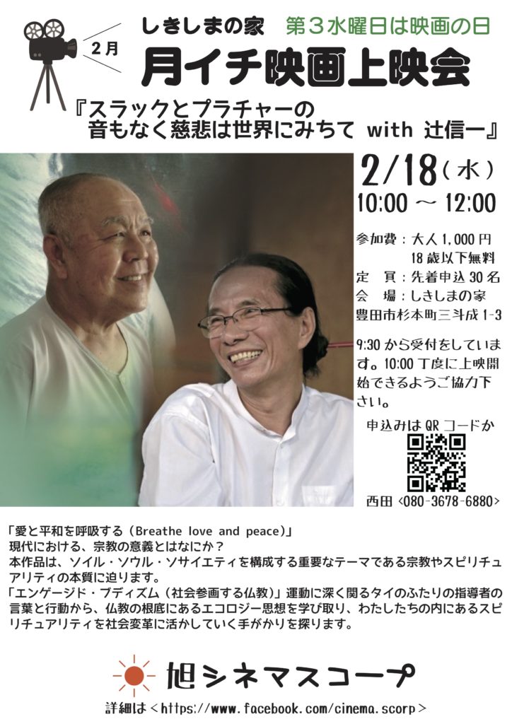 月イチ映画上映会 2月は映画『スラックとプラチャーの 音もなく慈悲は世界にみちて』を上映します!