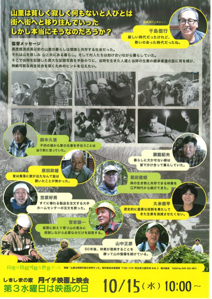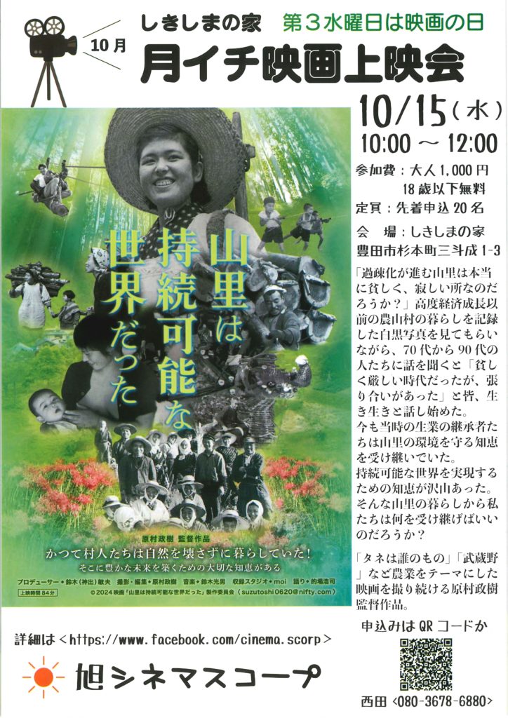 月イチ映画上映会 10月は『山里は持続可能な世界だった』を上映します!