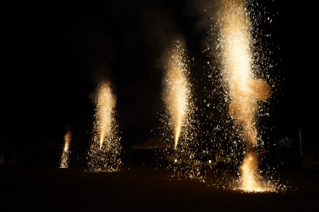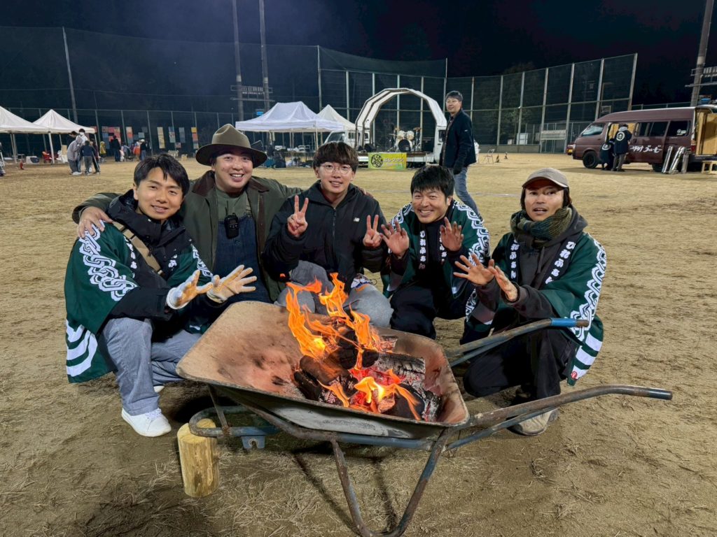 フェス当日、焚き火のそばで