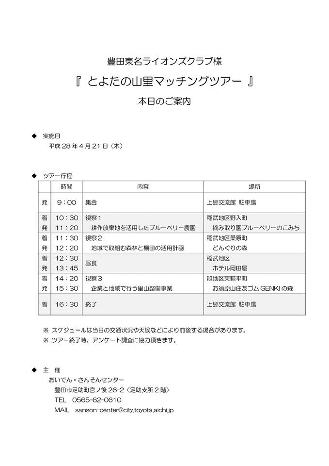 CSRやビジネスで企業と農山村をつなぐ『とよたの山里マッチングツアー』を開催しました。