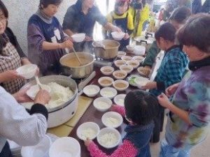 地域の皆さんが作られた野菜がふんだんに使われた美味しい「豚汁」、昆布の旨味の聞いた「浅漬け」、自治区長さんが栽培された「幻の大平米のご飯」、大平町で栽培されたブレーベリーで作った「ブルーベリージャムのヨーグルト」、甘酒やコーヒーと、地域の味を楽しみました。